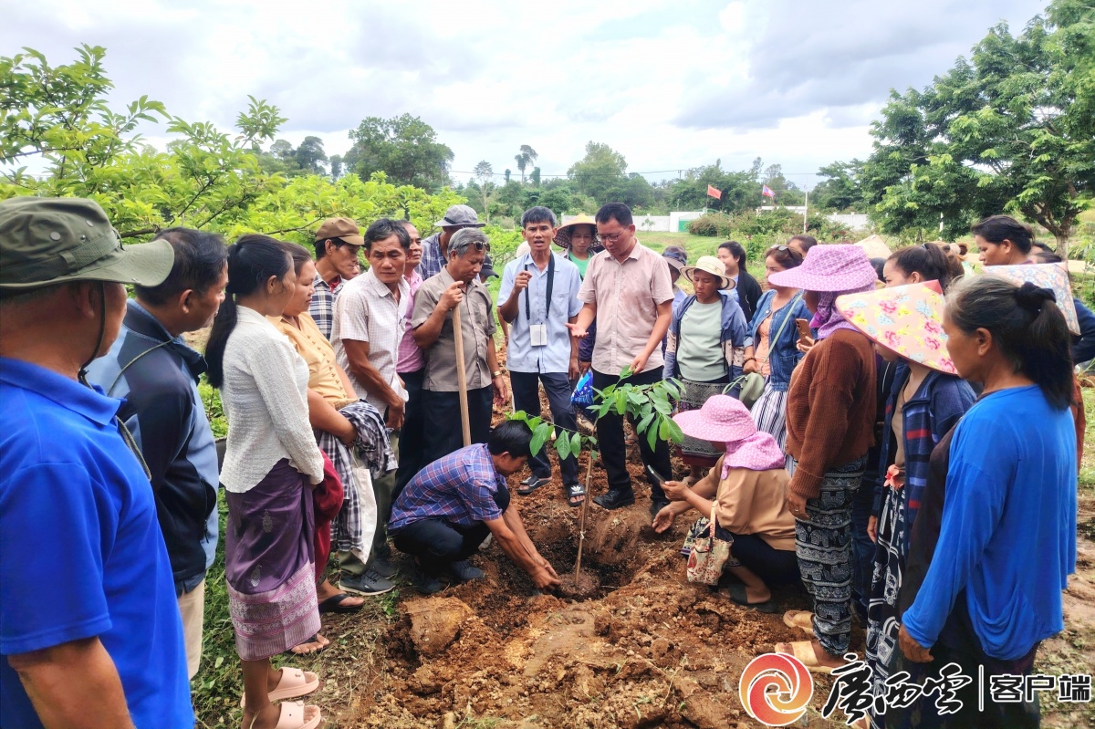 中国(广西)-老挝农作物优良品种试验站工作人员吕峰在指导果树种植。自治区农业农村厅 供图