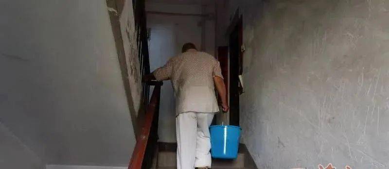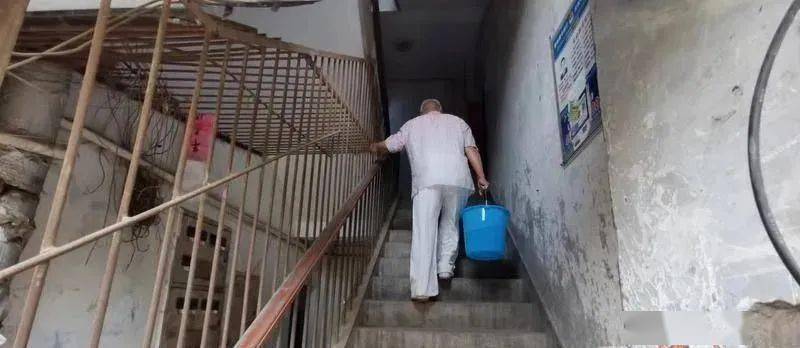 4月9日下午,记者来到该小区,这是一个比较老旧的小区,层高7层无电梯。小区有业主刚买了桶装水拎回来,还有白发老人提着一桶水爬六楼,“爬一趟楼得歇三次。”老人说,这两天天气热,用水量大,不得不到处去找水,他们都是在附近商场接的水。