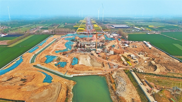 3月31日,赵口引黄灌区现代化改造工程代岗闸重建项目正加速推进。宁志超 摄